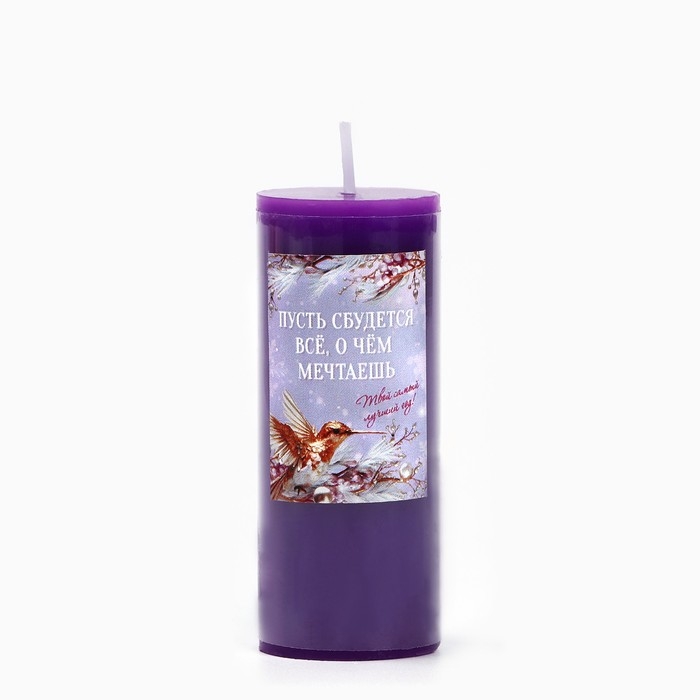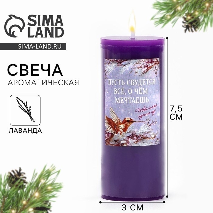 Новогодняя свеча-столбик интерьерная «Новый год: Пусть все сбудется», лаванда , 3 x 7,5 см