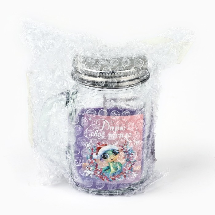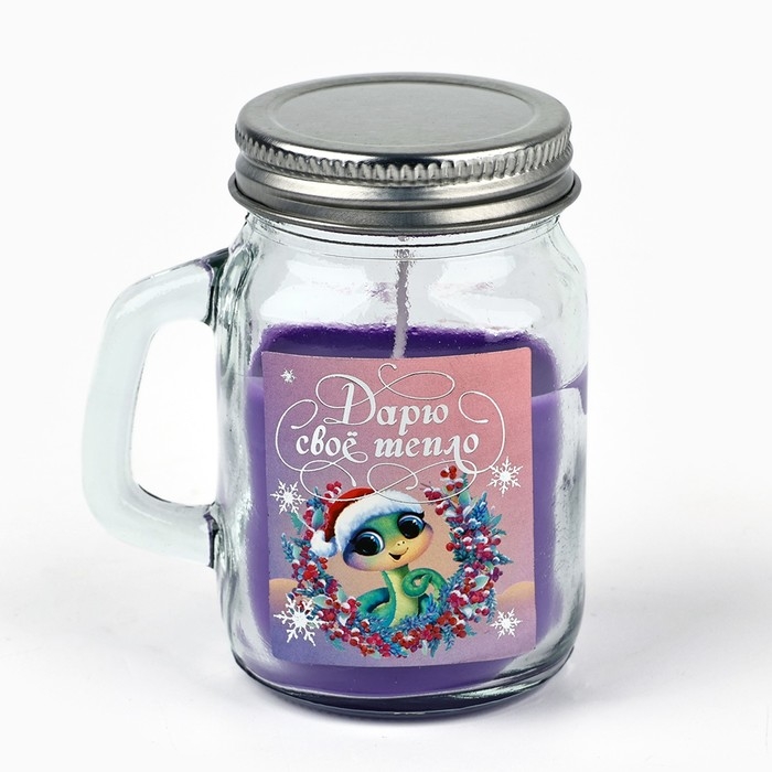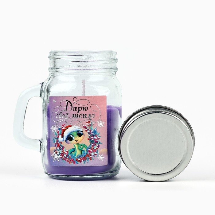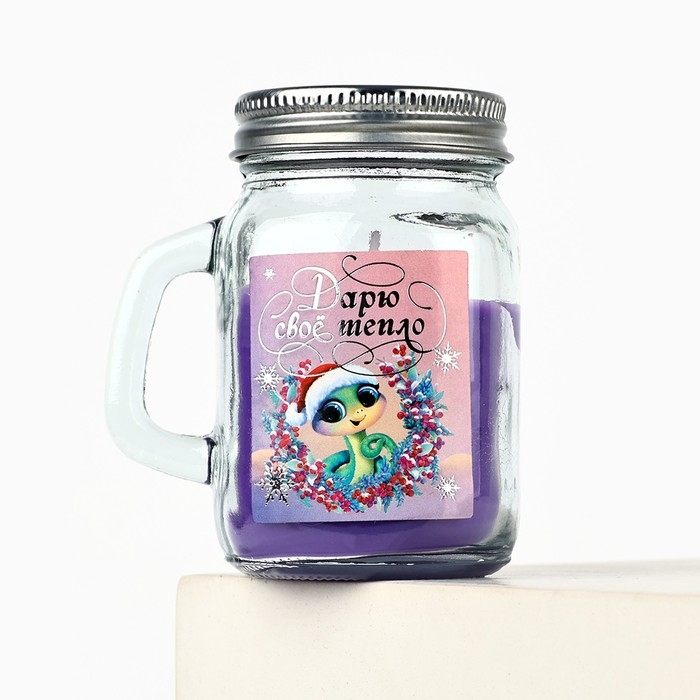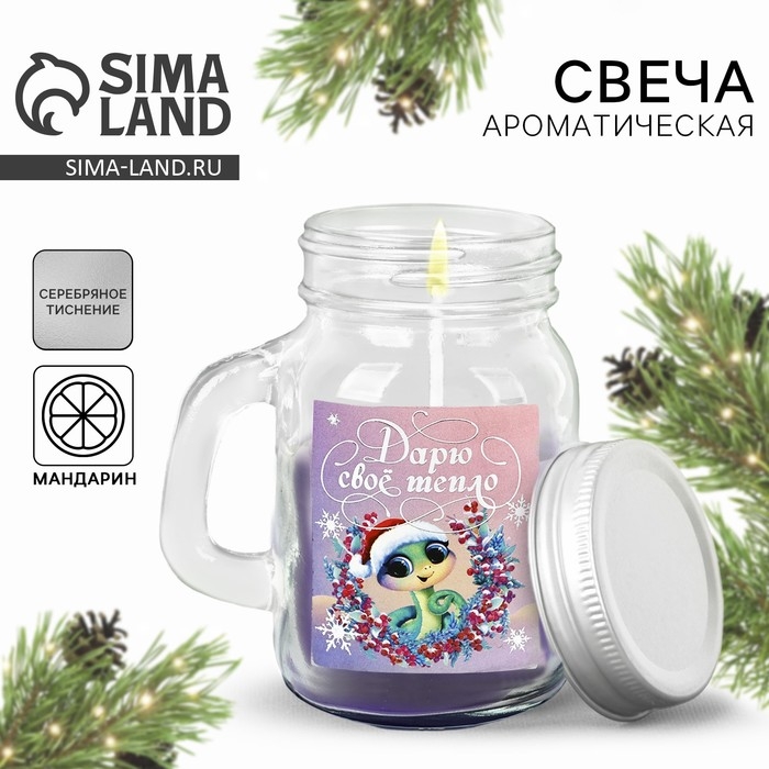 Новогодняя свеча в баночке с ручкой «Новый год: Дарю свое тепло», аромат мандарин, 7 х 8,5 х 5 см