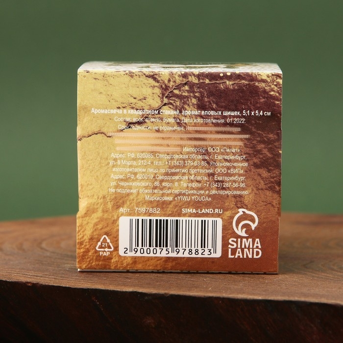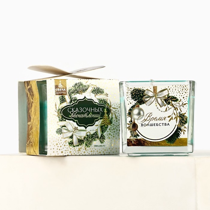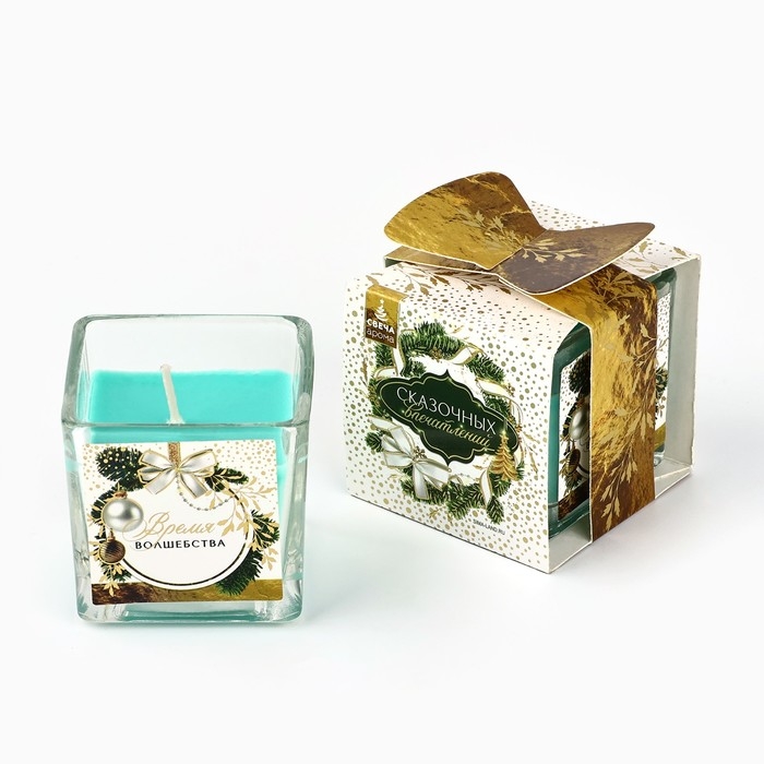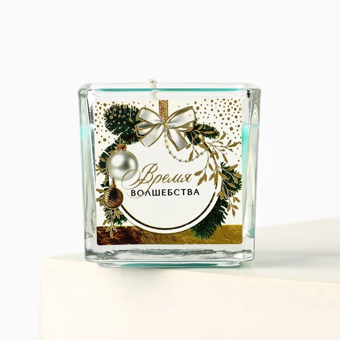Свеча с калькой новогодняя «Аромат праздника» на Новый год на Новый год, аромат еловые ветки,5х6х5 см