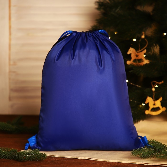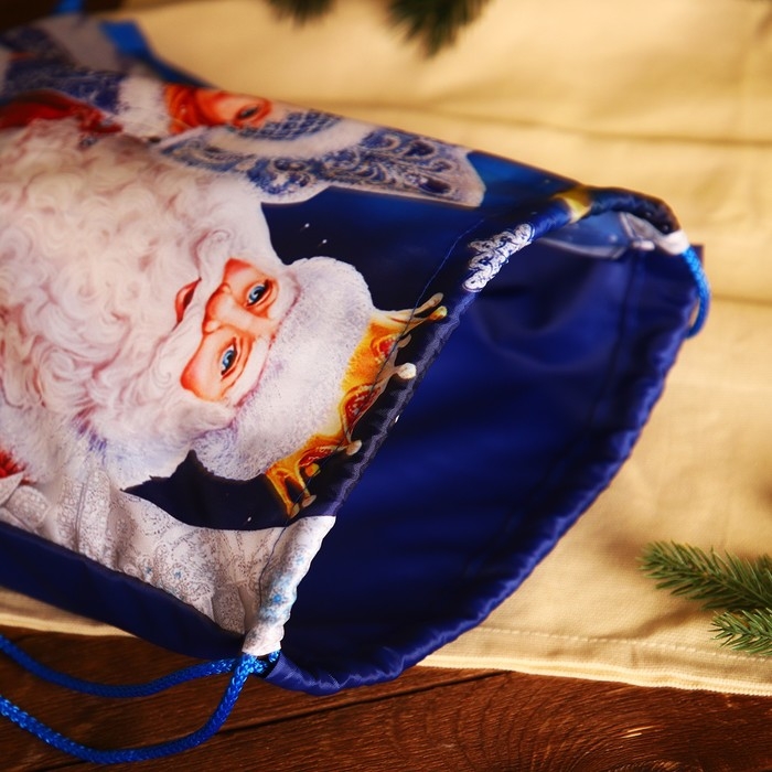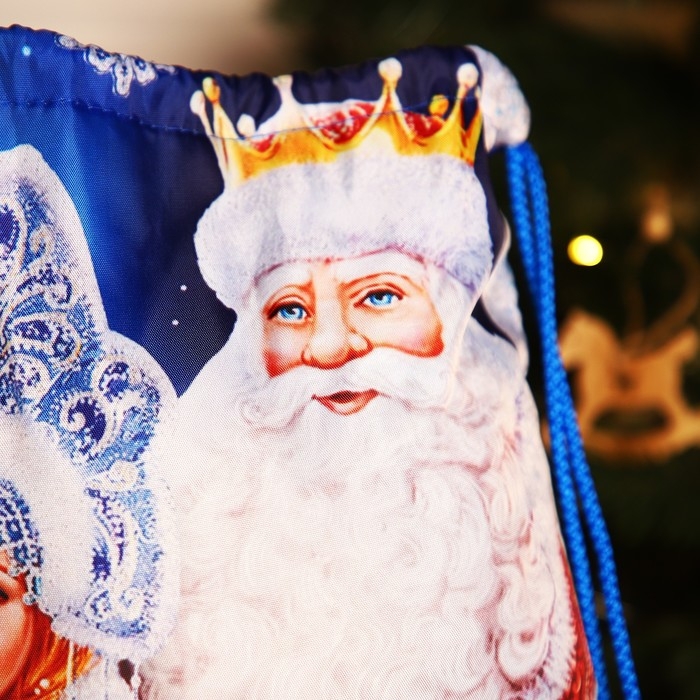 Новый год 2025. Новогодний мешок для подарков на шнурке «Дед Мороз и Снегурочка», цвет синий/разноцветный