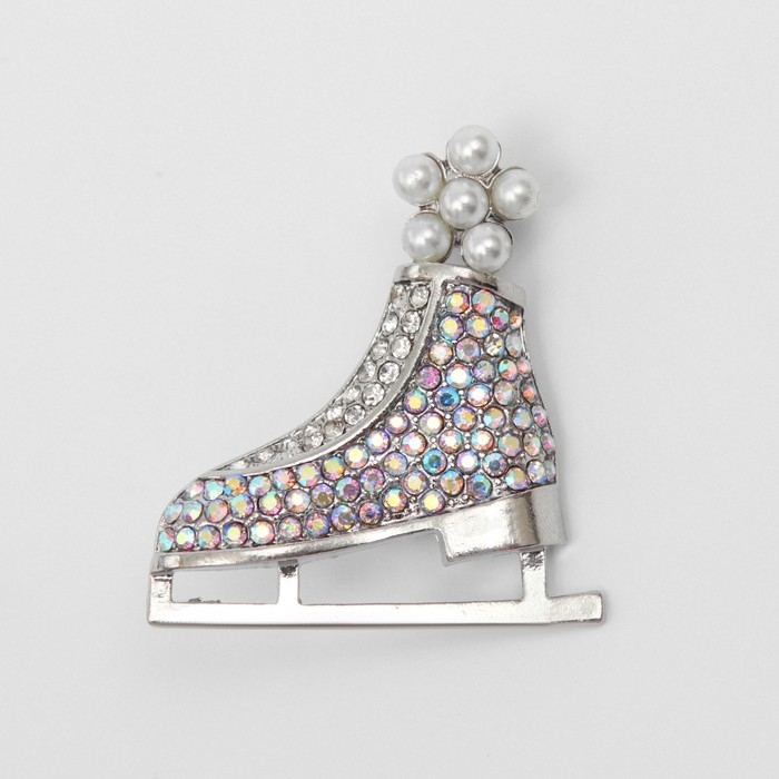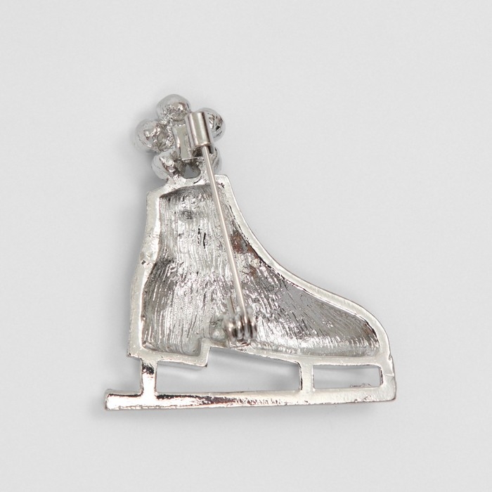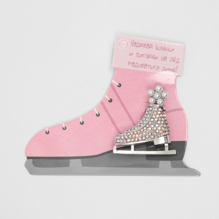 Брошь новогодняя «Коньки» с бантом, цвет красно-белый в золоте