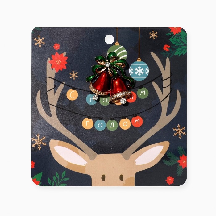 Новый год! Брошь новогодняя "Колокольчики", цвет красно-зеленый в золоте