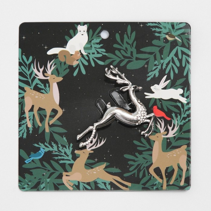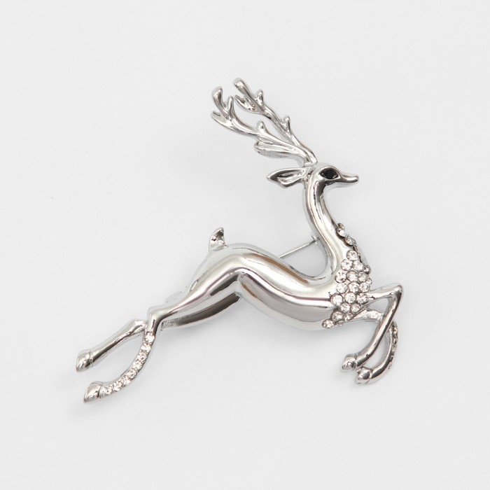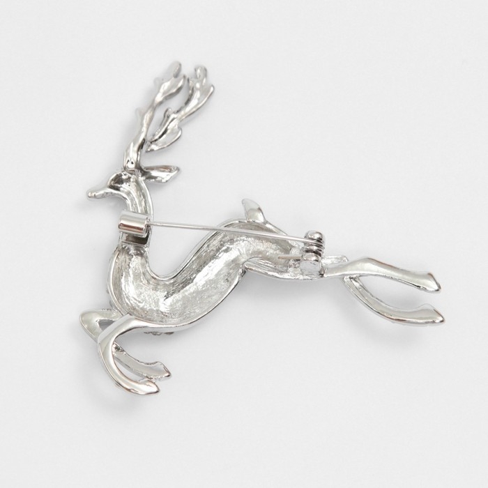Новый год! Брошь новогодняя "Олень", цвет белый в серебре
