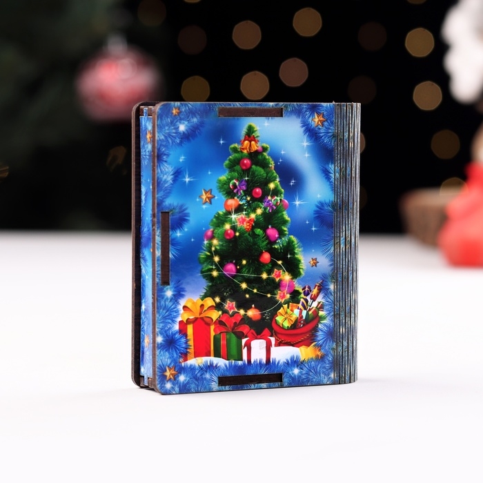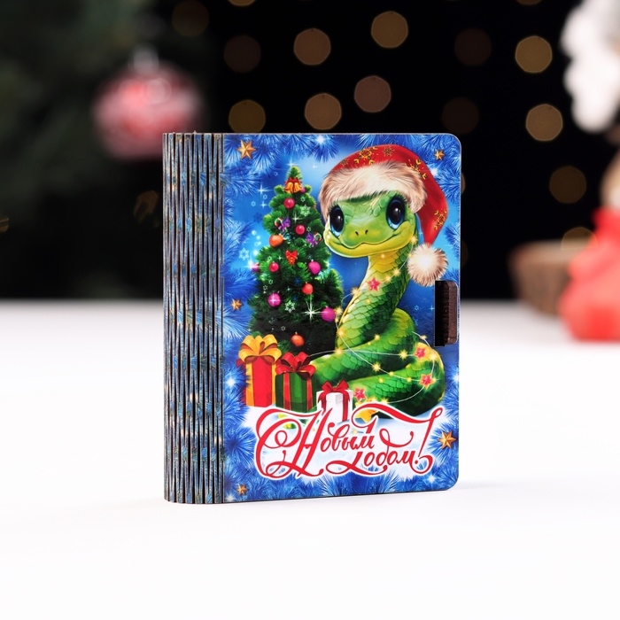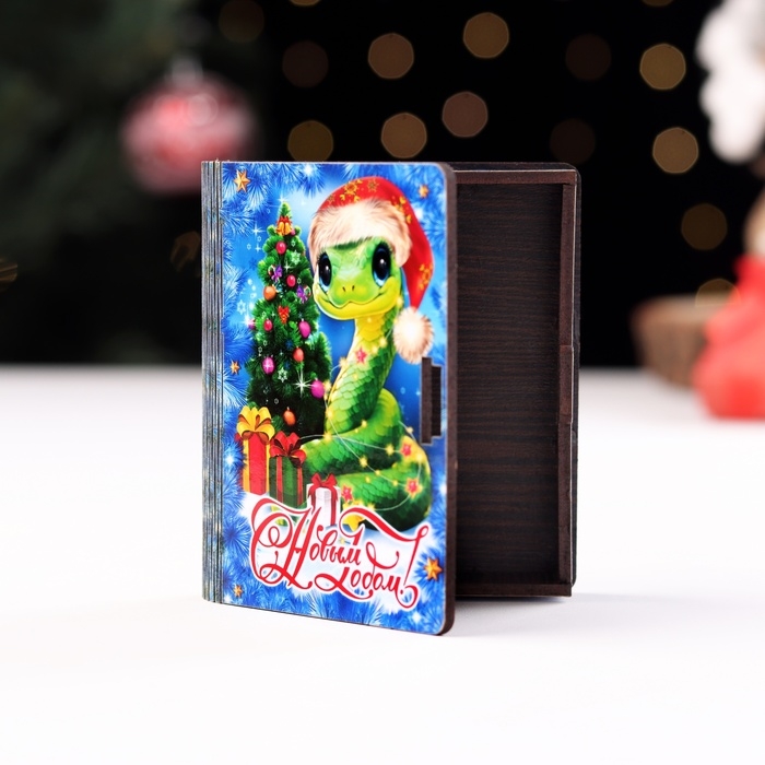 Новый год. Деревянный конверт для денег с символом года № 6 "Змея с елкой", 9,8х8,5х2 см