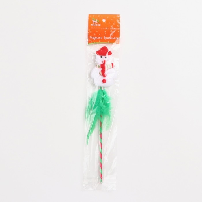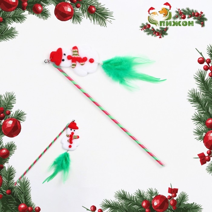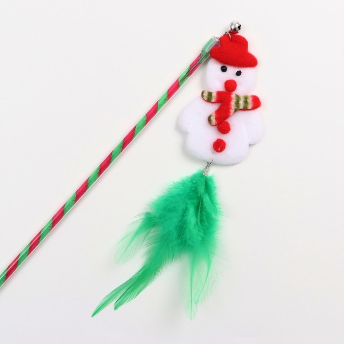 Новый год. Дразнилка для кошек с бубенчиком "Новогодний снеговик", 30 см