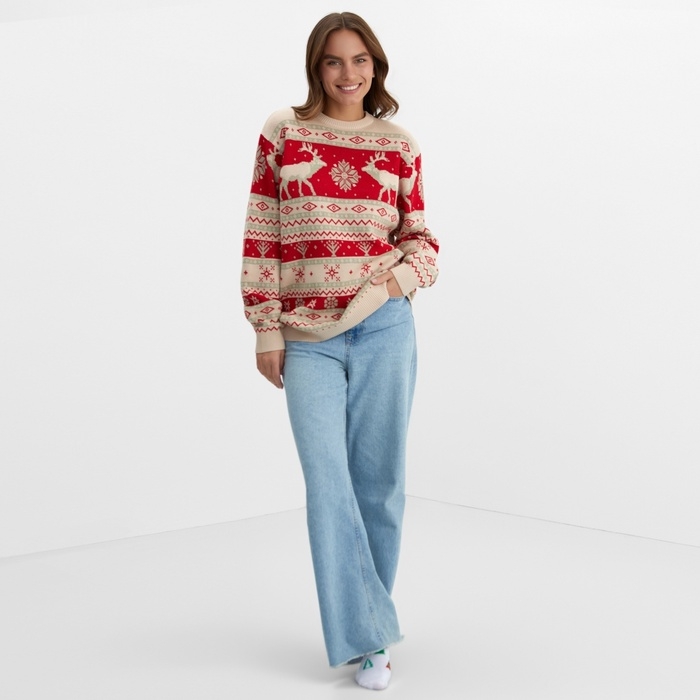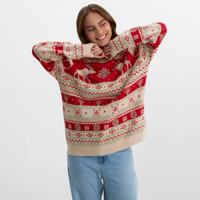 Новый год. Джемпер вязаный KAFTAN Scandinavia размер 56, красный
