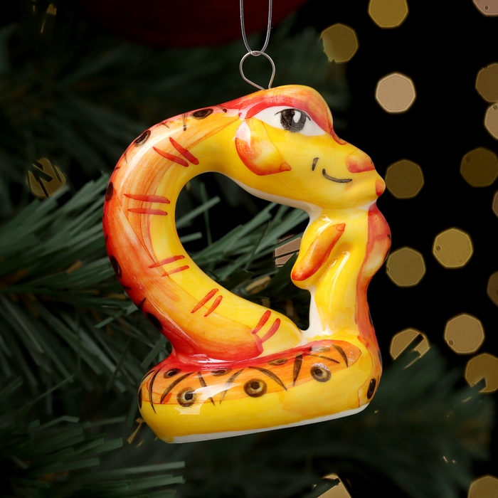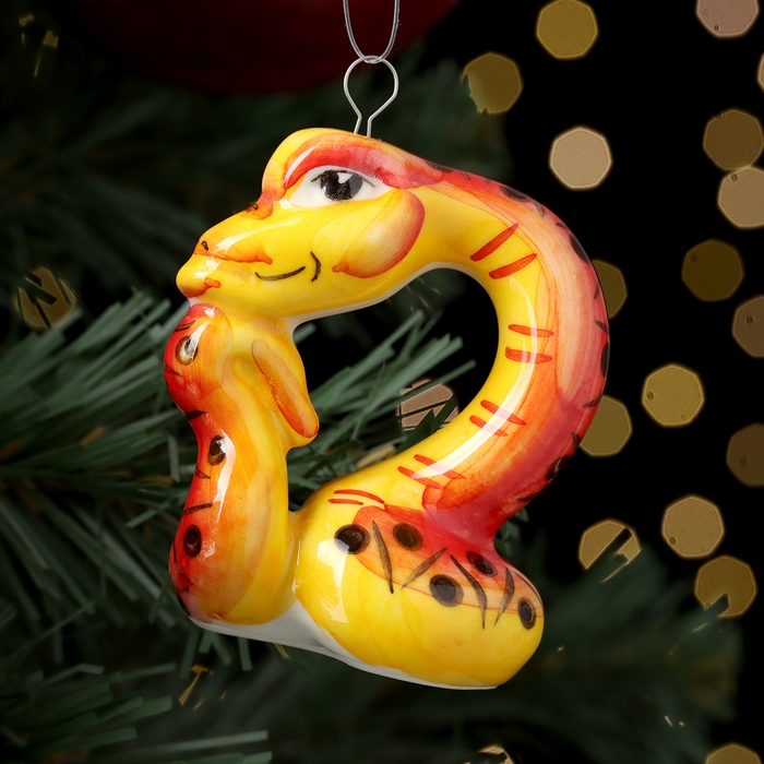 Новый год. Ёлочная игрушка символ года "Змей Мыслитель красный", 7 см, фарфор