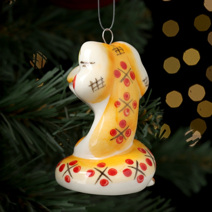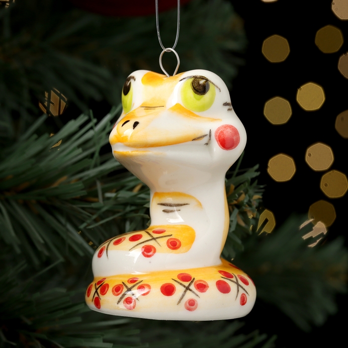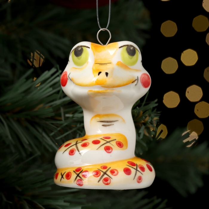 Новый год. Ёлочная игрушка символ года "Змей Улыбка красный", 7 см, фарфор