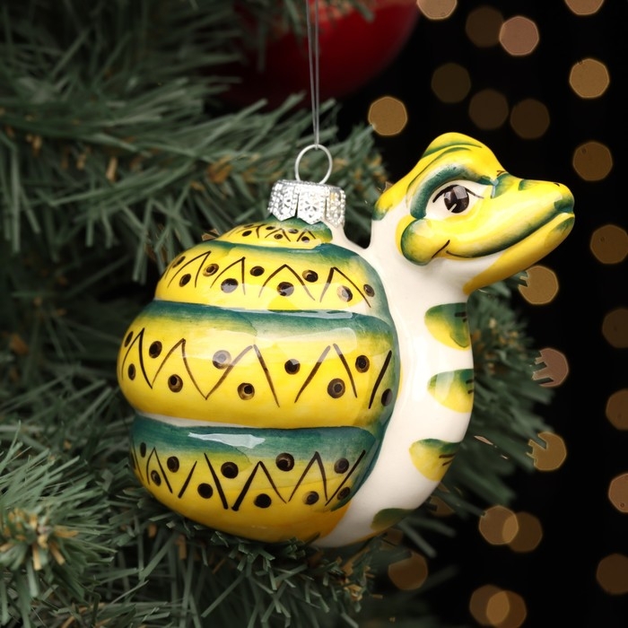 Новый год. Ёлочный фарфоровый шар символ года "Змей зеленый", графика, 10 см