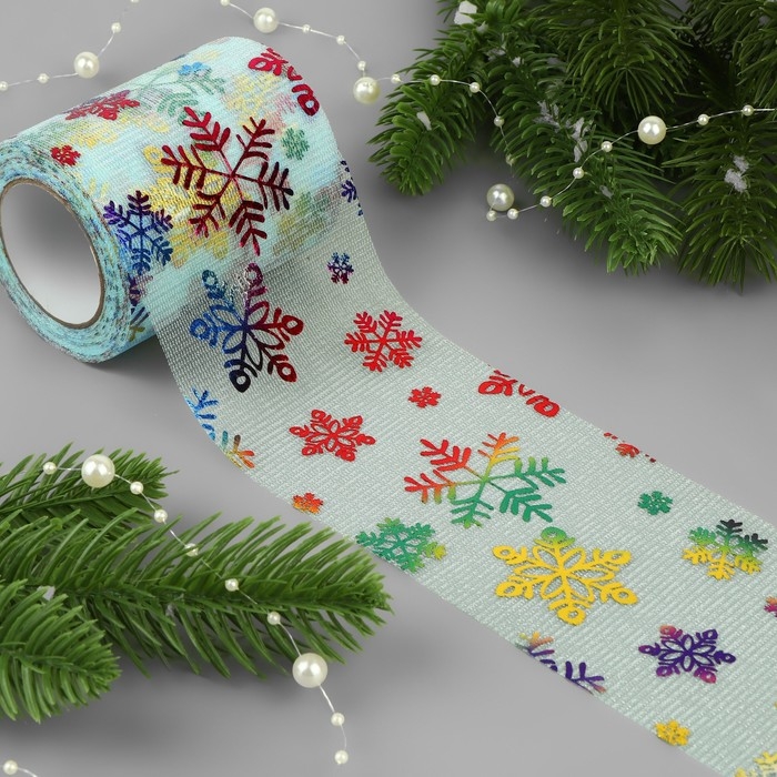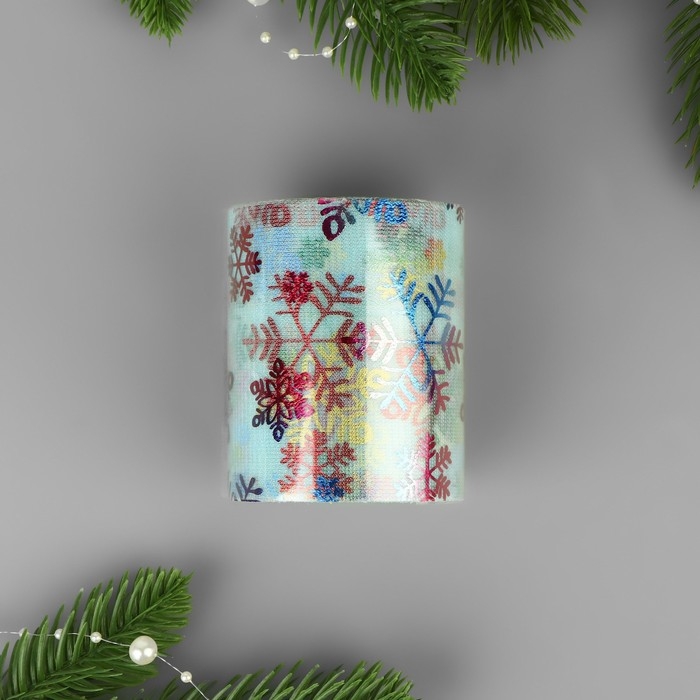 Новый год! Фатин со снежинками, с разноцветным тиснением, 7,5 см, 11 ± 1 г/кв.м, 9,1 ± 0,5 м, цвет голубой №11
