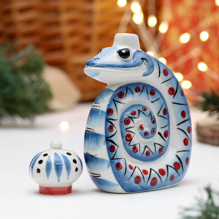 Новый год. Фляга фарфоровая символ года "Змей Шкалик Питерский", 13 см, 100 мл