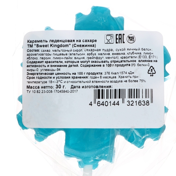 Новый год. Карамель леденцовая на палочке "3D Снежинка", 40 г