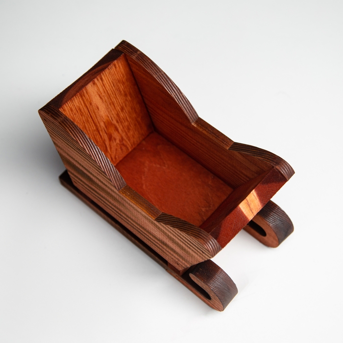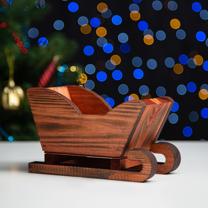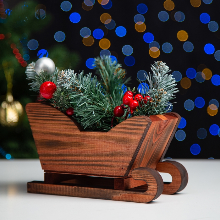 Новый год. Кашпо деревянное 20×12×13 см "Санки", брашированный Дарим Красиво