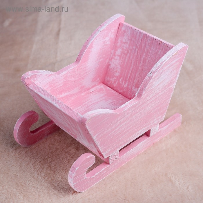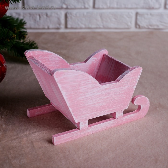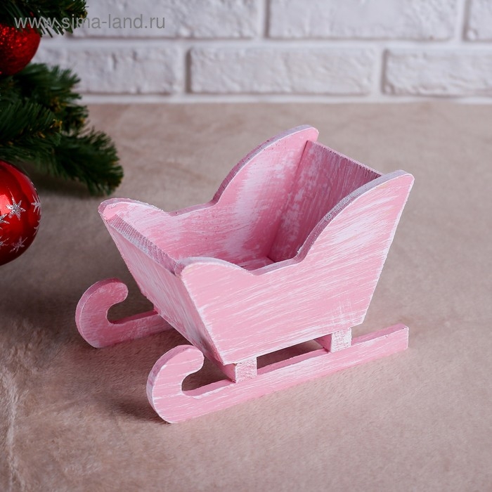 Новый год. Кашпо деревянное 20×12×13 см "Санки", розовая кисть Дарим Красиво