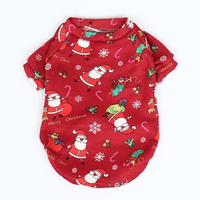 Новый год. Кофта новогодняя для животных "Подарки", размер S, красный (ДС 25, ОГ 35 см)