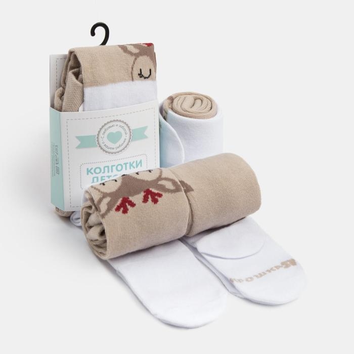 Новый год.Колготки Крошка Я "Олень", бежевый, рост 74-80 см