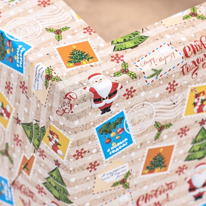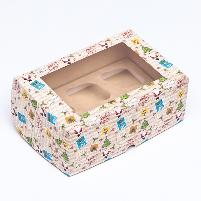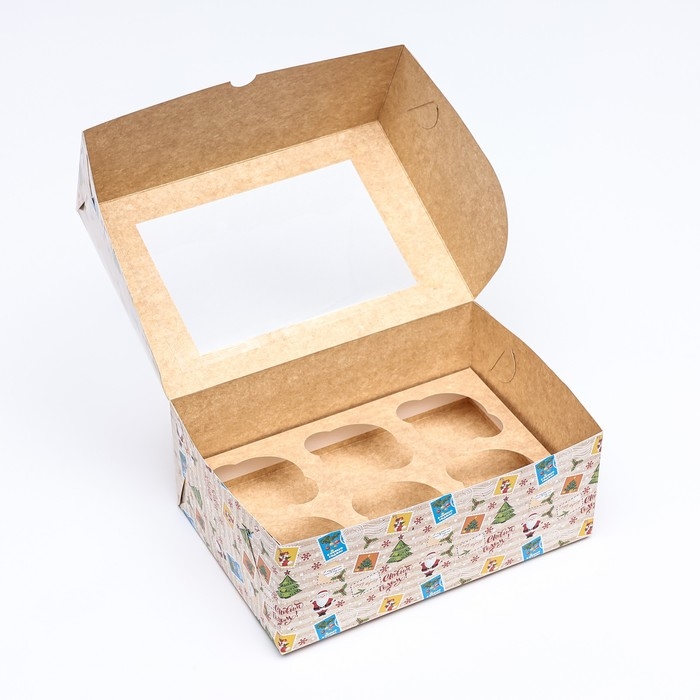 Новый год. Коробка для 6 капкейков с окном подарочная новогодняя упаковка, "Новогодняя почта", 25 х 17 х 10 см.