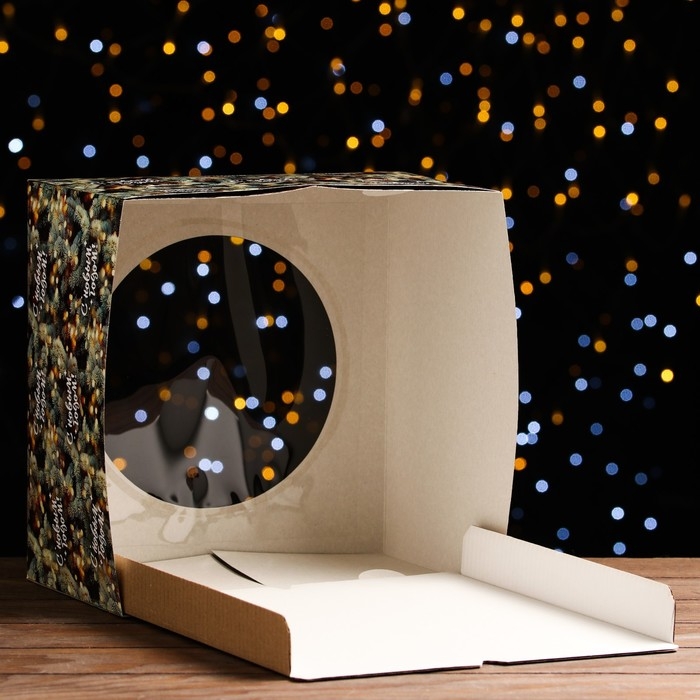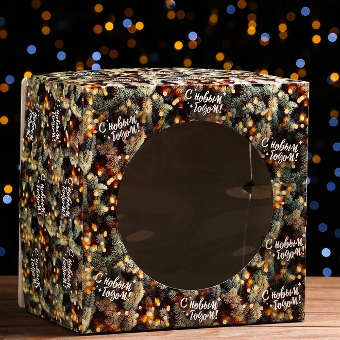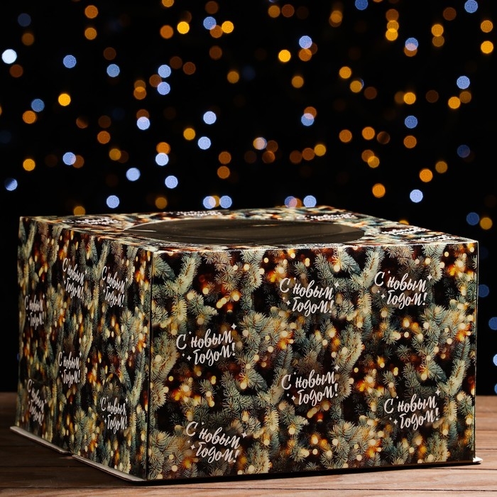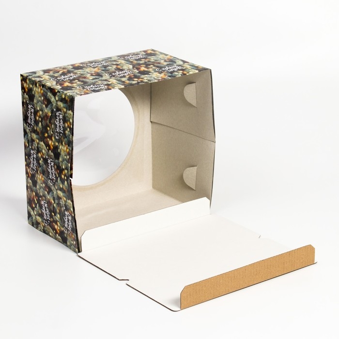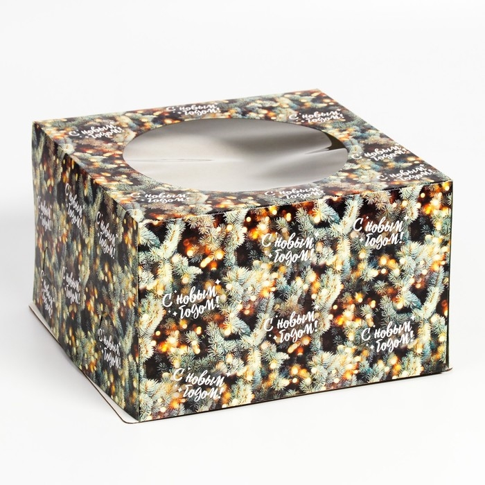 Новый год. Коробка для торта новогодняя с окном «Ветки ели», 30 х 30 х 19 см