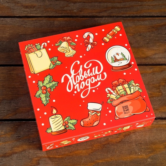 Новый год. Коробка под 9 конфет "Новогодний фонарик", 13,7 х 13,7 х 3,5 см, кондитерская упаковка