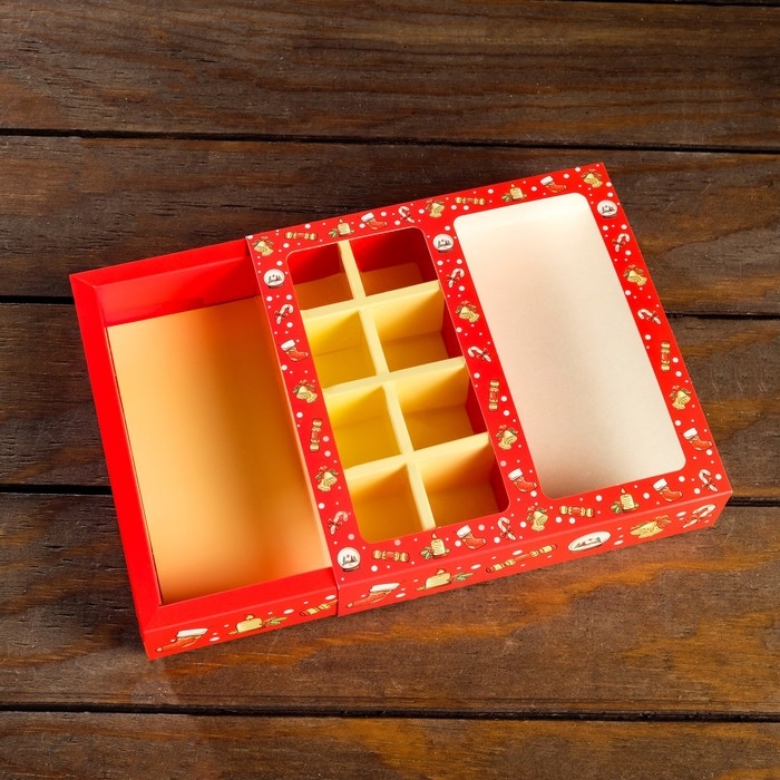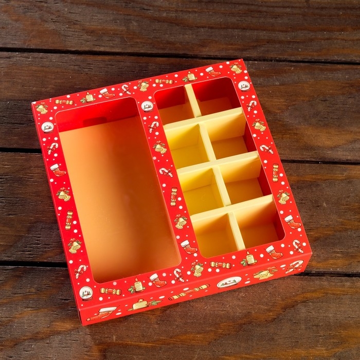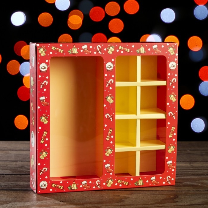 Новый год. Коробка под 8 конфет + шоколад, с окном, "Ёлочные игрушки",17,7 х 17,85 х 3,85 см