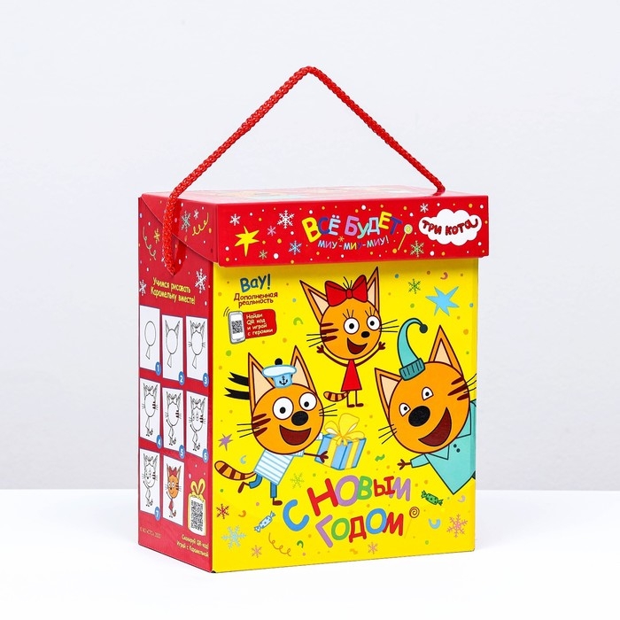 Новый год. Коробка подарочная складная "Три кота" 19,8 х 12 х 24,3 см.