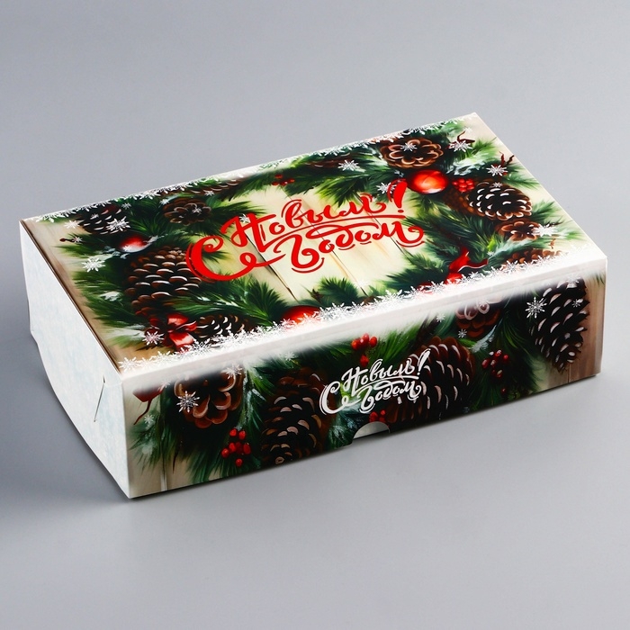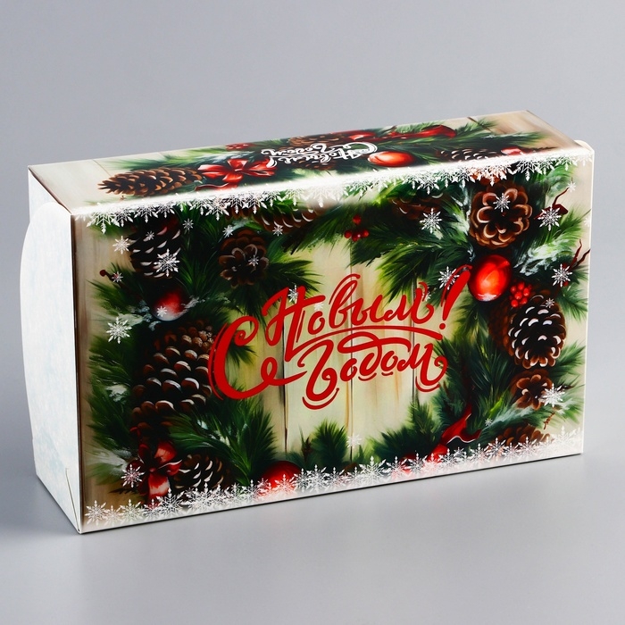 Новый год. Коробка складная, кондитерская упаковка без окна "С Новым годом!", 25 х 15 х 7 см