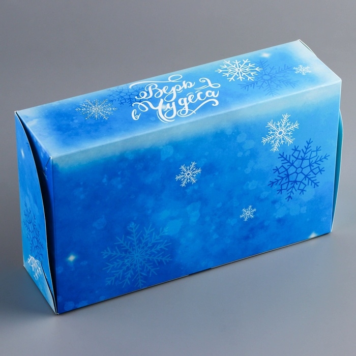 Новогодняя складная коробка с окном размером 25 х 15 х 7 см — это идеальная упаковка для праздничных подарков и угощений. Изготовленная из прочного картона, коробка украшена ярким зимним дизайном с новогодними мотивами, создавая атмосферу праздника.