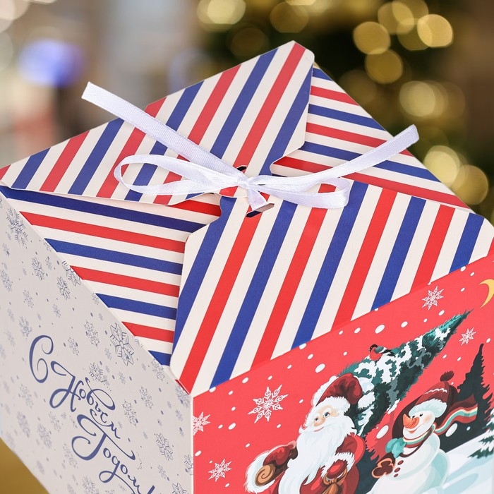 Коробка складная новогодняя - идеальное решение для упаковки и подарка новогодних сюрпризов. Её праздничный дизайн с символами Нового года создает особую атмосферу и делает эту коробку идеальным выбором для упаковки подарков в преддверии праздника. Подарите радость и праздничное настроение в компактной и удобной коробке.