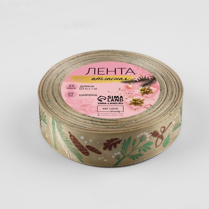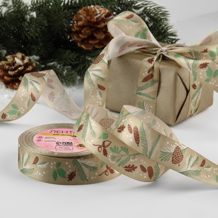 Новый год! Лента атласная «Новогодний лес», 25 мм, 23 ± 1 м, цвет бежевый №067