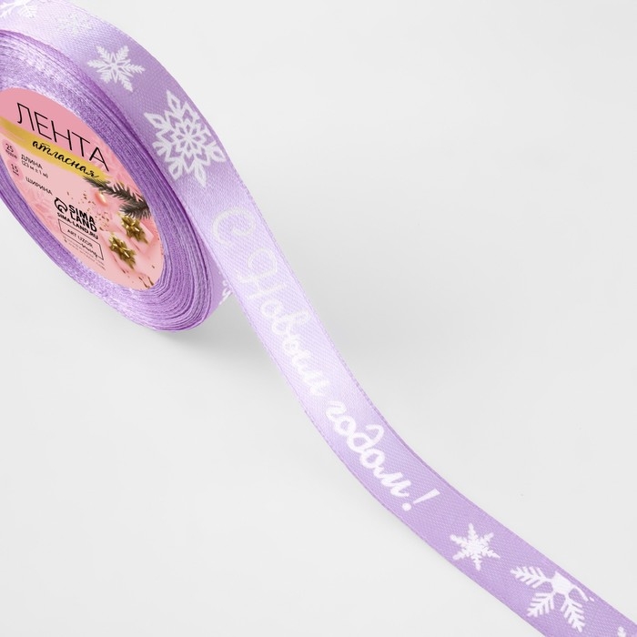 Новый год! Лента атласная «С Новым годом!», 15 мм, 23 ± 1 м, цвет сиреневый/белый №044