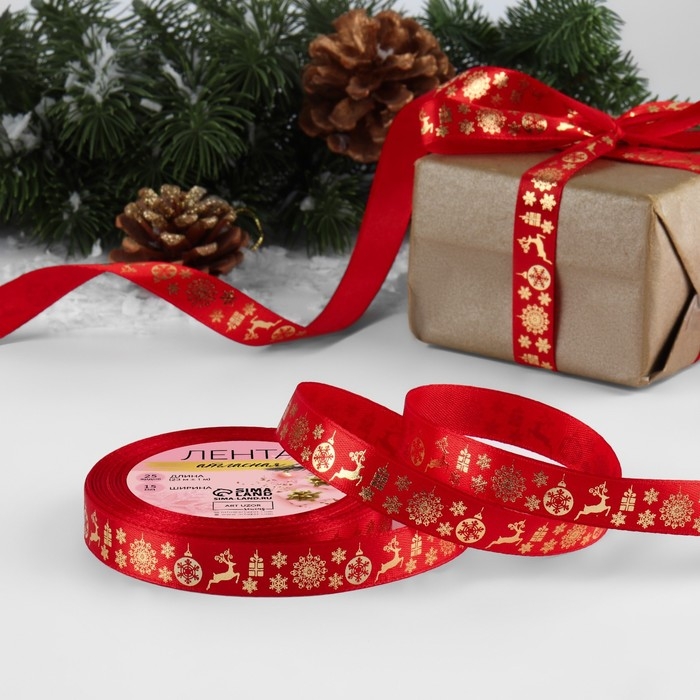 Новогодняя лента является универсальным помощником при изготовлении рукоделий, украшении интерьера, упаковке подарков и другого.
