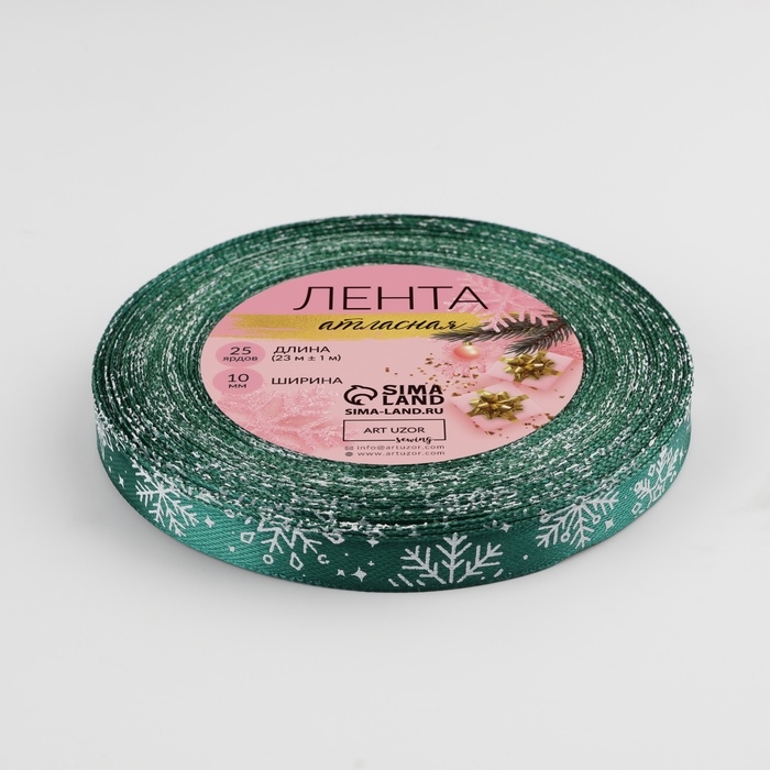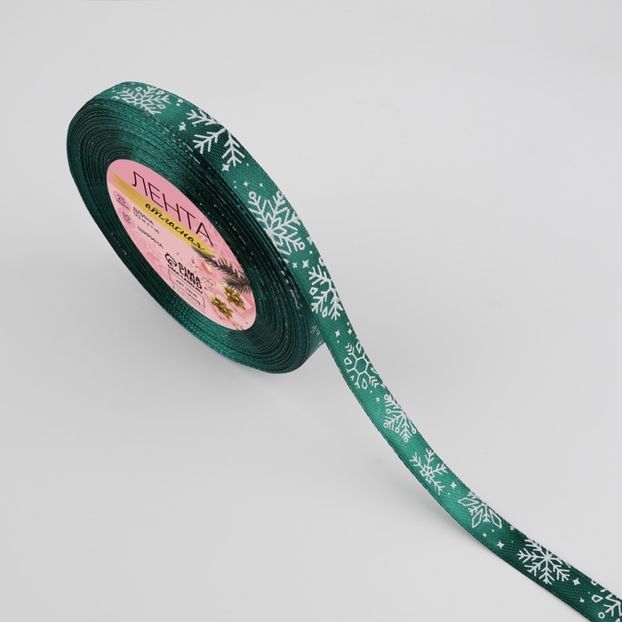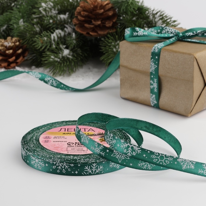 Новый год! Лента атласная «Снежинки», 10 мм, 23 ± 1 м, цвет зелёный №56