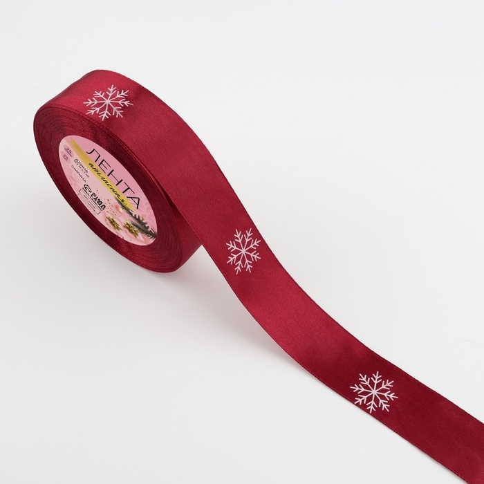 Новый год! Лента атласная «Снежинки», 25 мм, 23 ± 1 м, цвет красный/белый №033