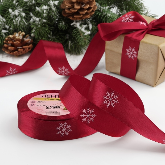 Лента атласная «Морозко», 25 мм, 23 ± 1 м