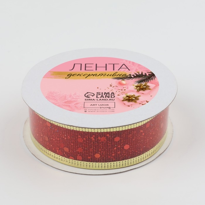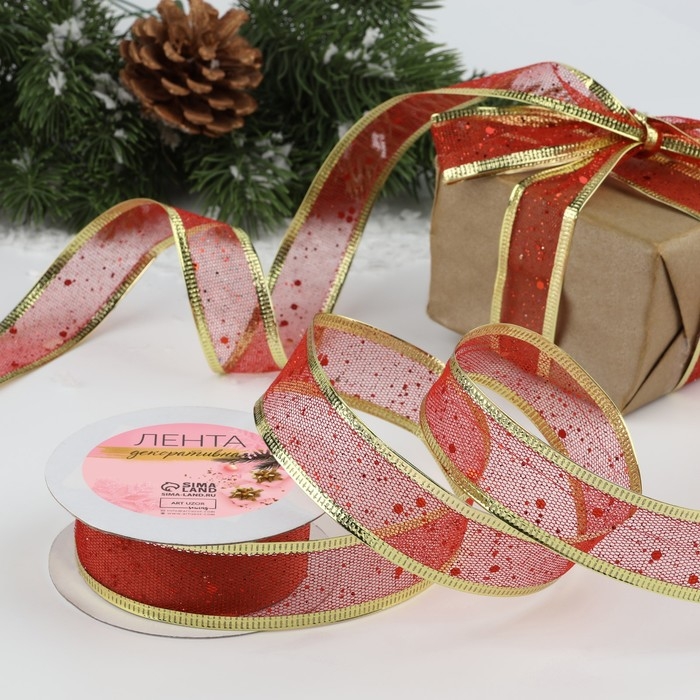 Новый год! Лента капроновая с металлической нитью «Блёстки», 25 мм × 2,7 ± 0,5 м, цвет красный/золотой