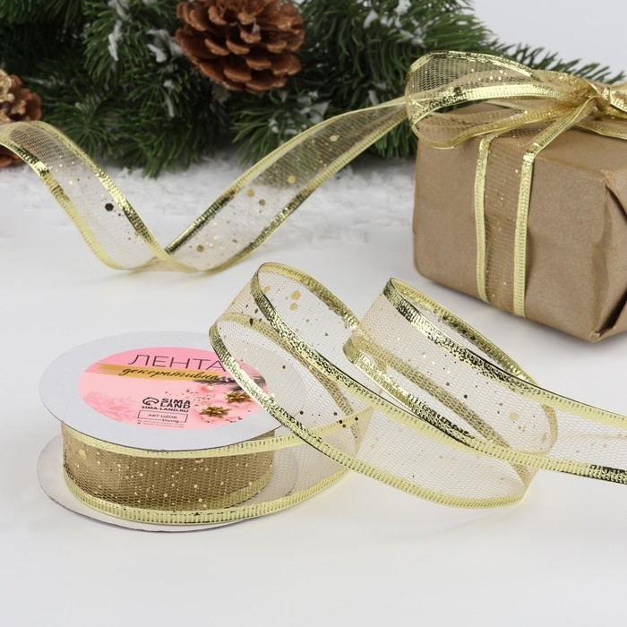 Новый год! Лента капроновая с металлической нитью «Блёстки», 25 мм × 2,7 ± 0,5 м, цвет золотой