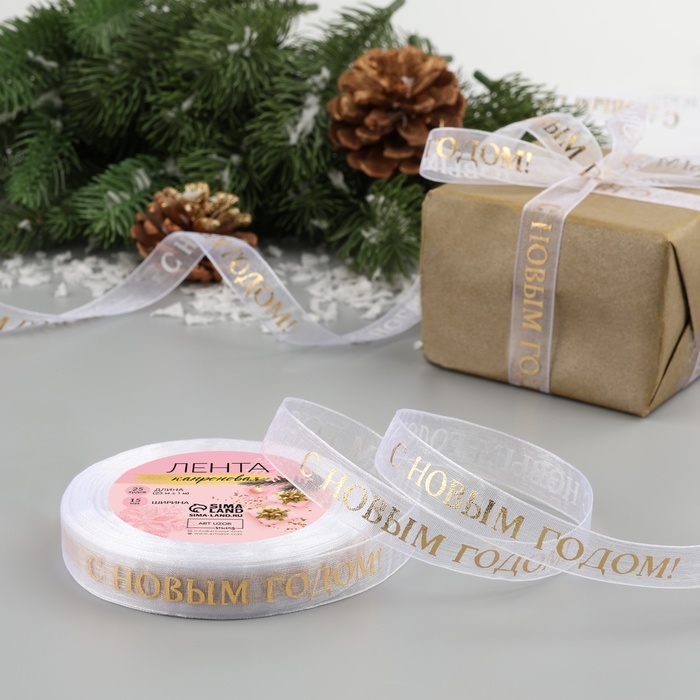 Новогодняя лента является универсальным помощником при изготовлении рукоделий, украшении интерьера, упаковке подарков и другого.