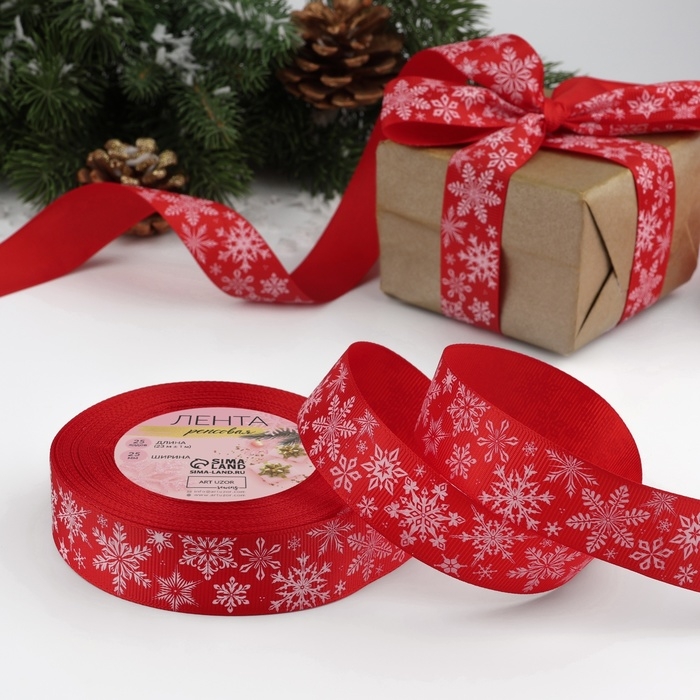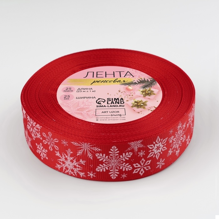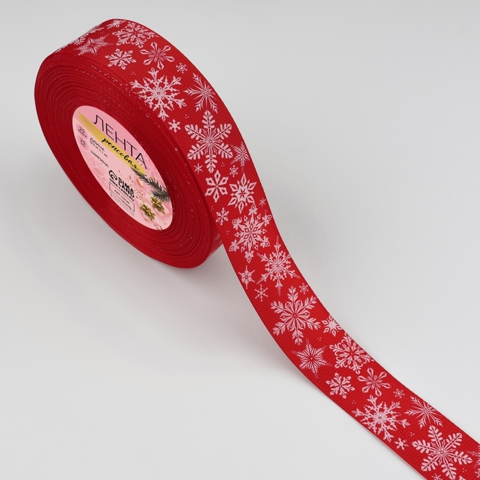 Новый год! Лента репсовая «Праздничные снежинки», 25 мм, 23 ± 1 м, цвет красный/белый №0026