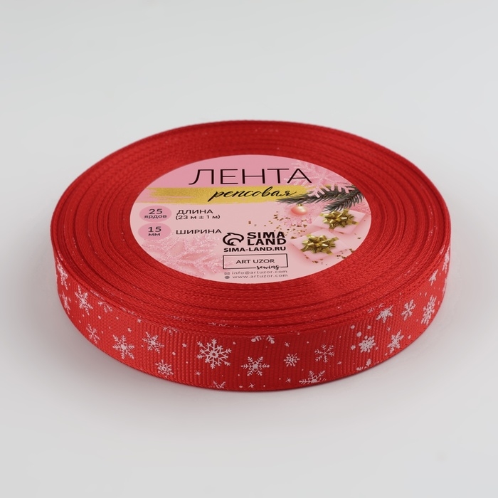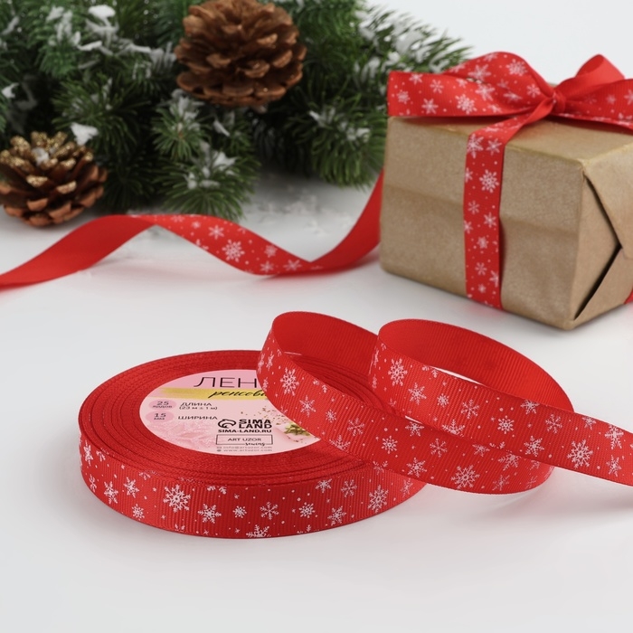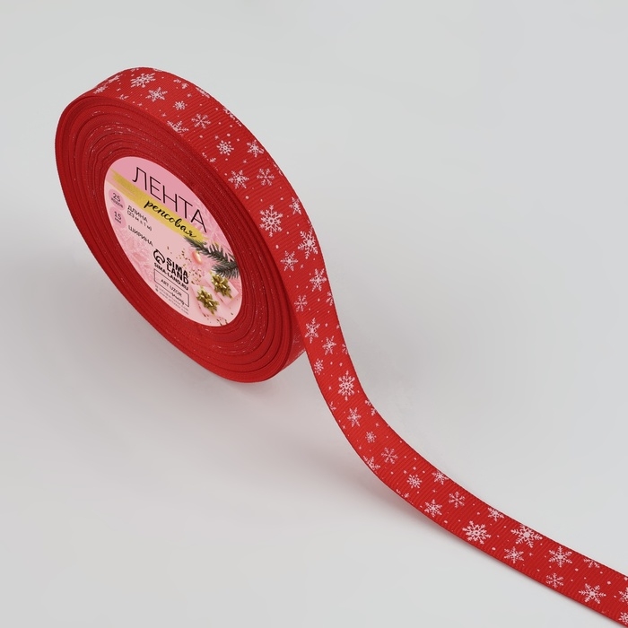 Новый год! Лента репсовая «Снежинки», 15 мм, 23 ± 1 м, цвет красный №33