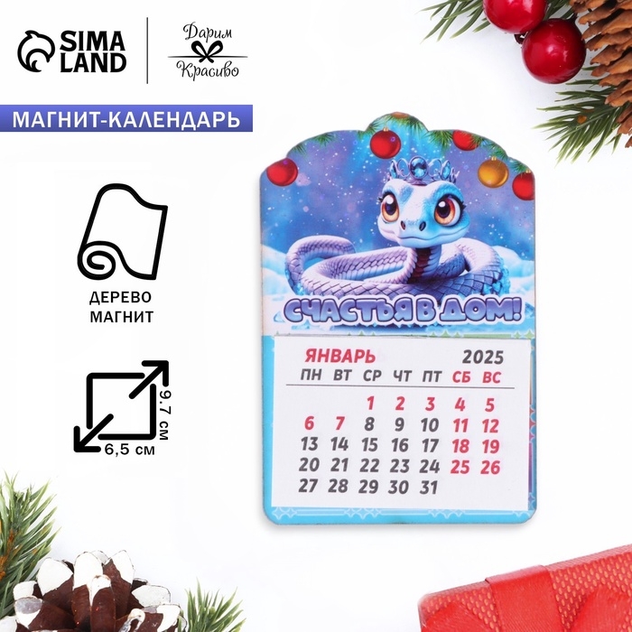 Магнит новогодний календарь "Символ года 2025.Тепла и уюта!", 12 месяцев, подкова