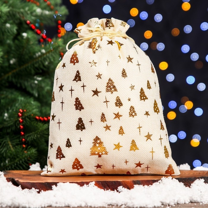 Новый год. Мешочек подарочный из холщи “Елочки", 20 х 28 см