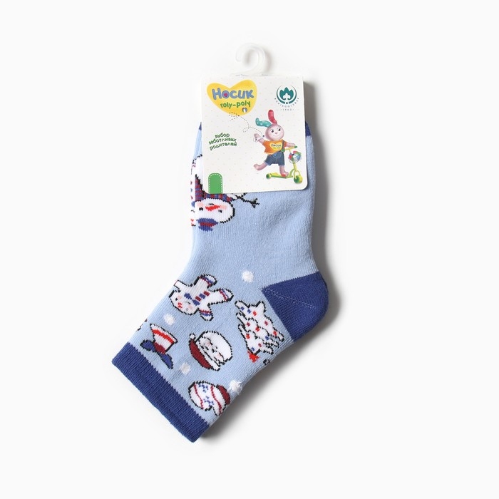 Новый год. Носки махровые детские, цвет голубой, размер 20-22