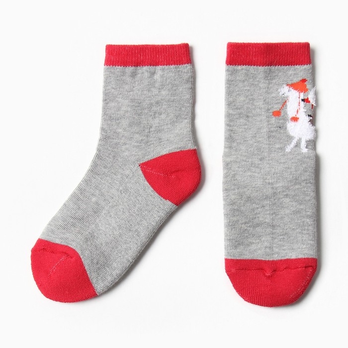 Новый год. Носки махровые детские, цвет серый, размер 18-20