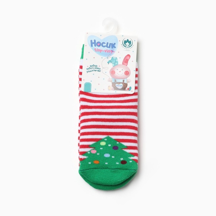 Новый год. Носки махровые детские, цвет зелёный, р-р 16-18