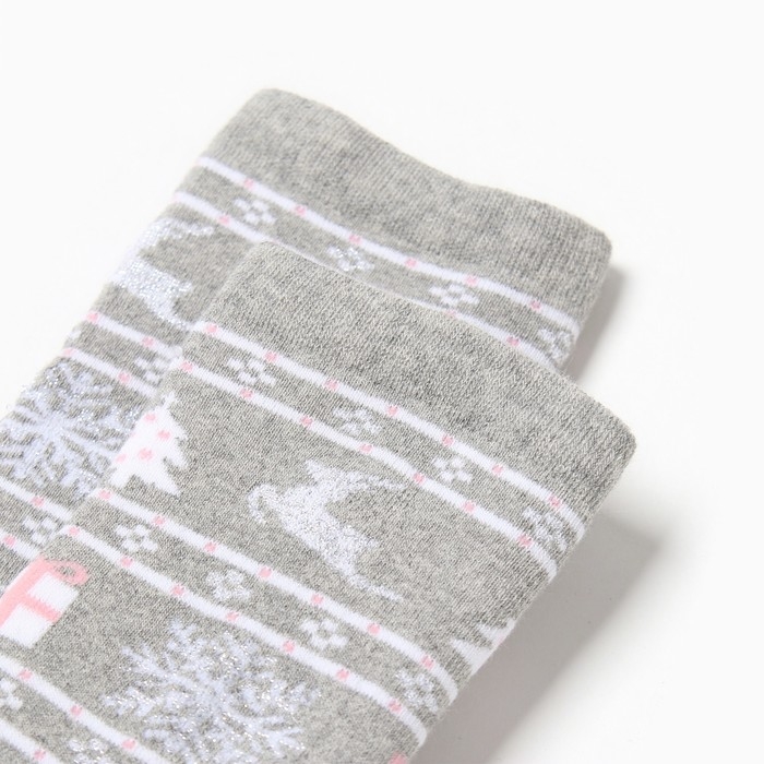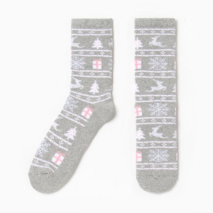 Новый год. Носки женские, цвет серый меланж, размер 23-25
