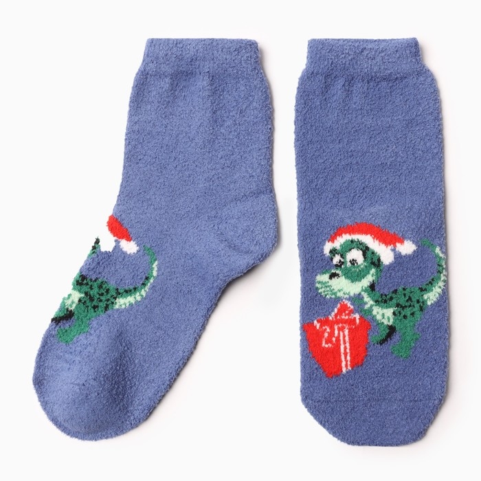 Новый год. Носки женские махровые «Дракончик с подарочной коробкой», цвет синий, размер 36-40