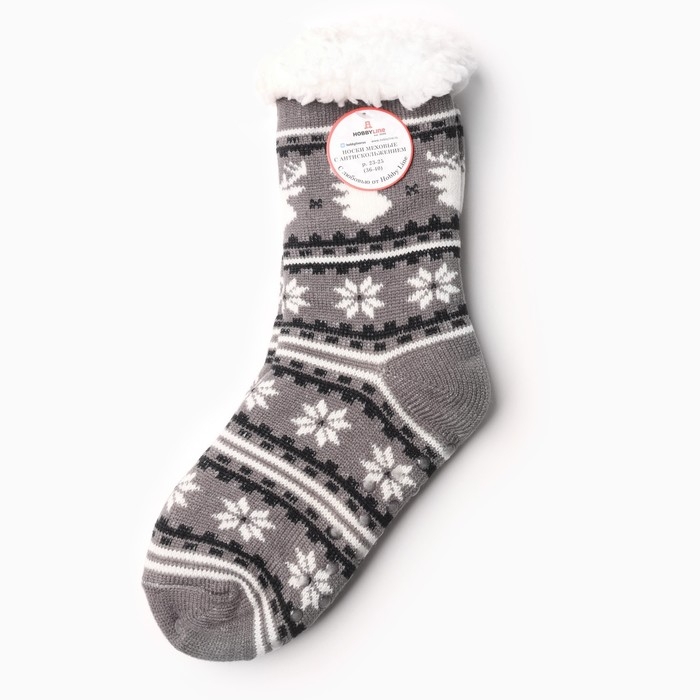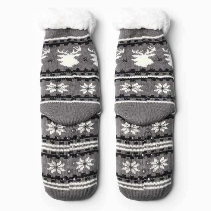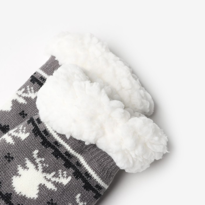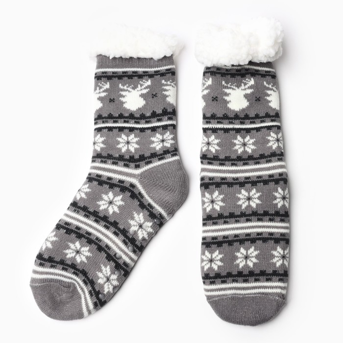 Новый год. Носки женские с мехом "Снежинки с оленем", цвет серый, размер 36-40