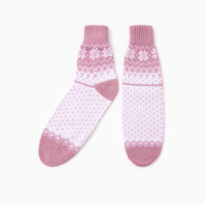 Новый год. Носки женские шерстяные, цвет сиреневый/белый, р-р 25-27