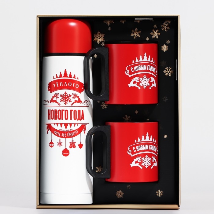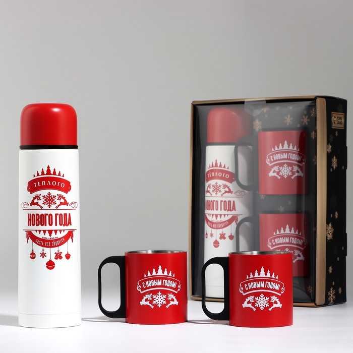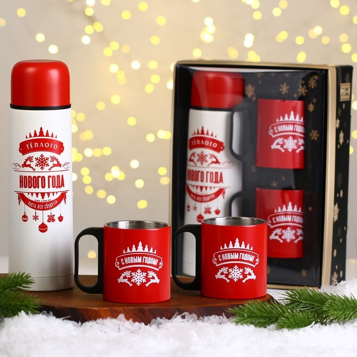 Новый год. Новогодний набор «Тёплого Нового года», термос 500 мл, кружка 2 шт