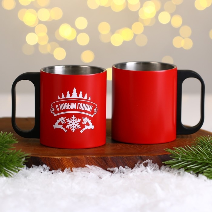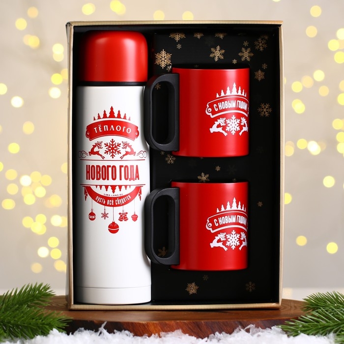 - Две кружки с новогодним дизайном станут прекрасным дополнением к термосу.